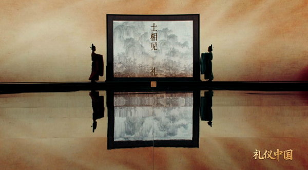 A still from Chinese Etiquette & Ceremonies captures the traditional ritual performed for the meeting of two scholars in ancient China. /CMG