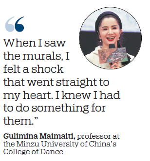 Gulimina Maimaiti, a professor at the Minzu University of China's College of Dance, is the producer and lead performer of Her Qiuci, portraying a mural conservator. She says the inspiration for the work came from her field research in Kucha, where she observed conservators at work.