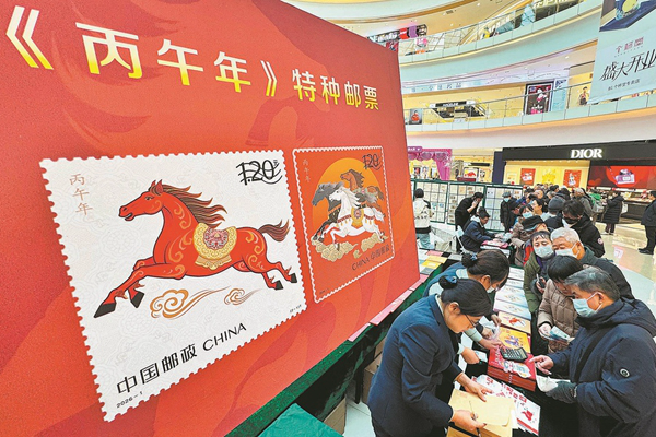 Residents wait in line to purchase Year of the Horse zodiac stamps at a shopping mall in Weifang, Shandong province, on Monday. ZHANG CHI/FOR CHINA DAILY
